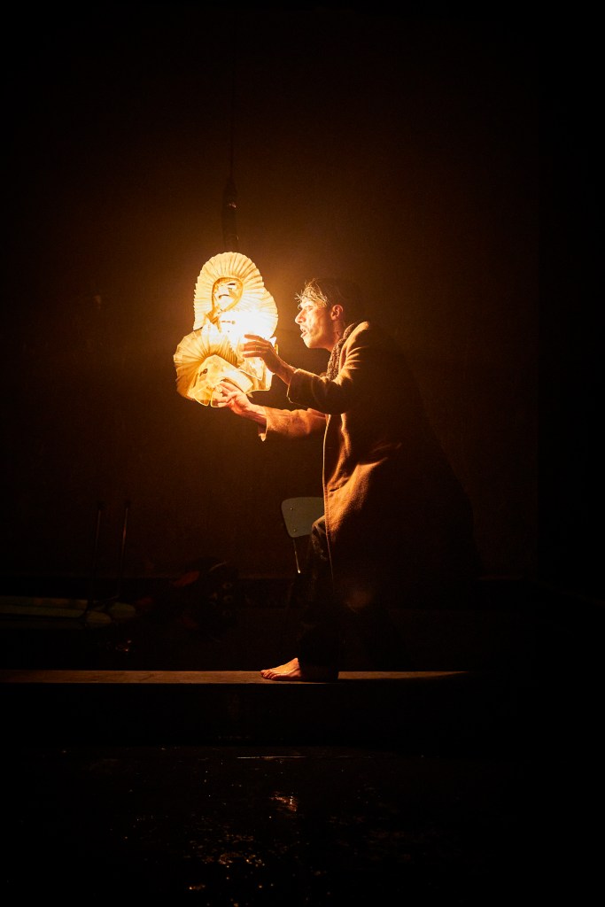 Inspiré par la vie et l’oeuvre de Vladimir Slepian, auteur mystérieux de la fin du XXème siècle, vraisemblablement mort de faim à Paris en 1998, cette création aura été l’occasion pour l’équipe artistique du Théâtre de la Suspension de partir à la recherche de ses fondamentaux poétiques. Il fallait que la dramaturgie, la scénographie et l’univers sonore puissent atteindre une densité maximale afin de constituer un appui solide pour le comédien seul en scène. Le motif de la dévoration est peu à peu apparu comme le biais permettant de reconsidérer de façon originale notre manière de faire société. Qui dévore qui ? Pour qui ? Pourquoi certains mangent quand d’autres sont mangés ?