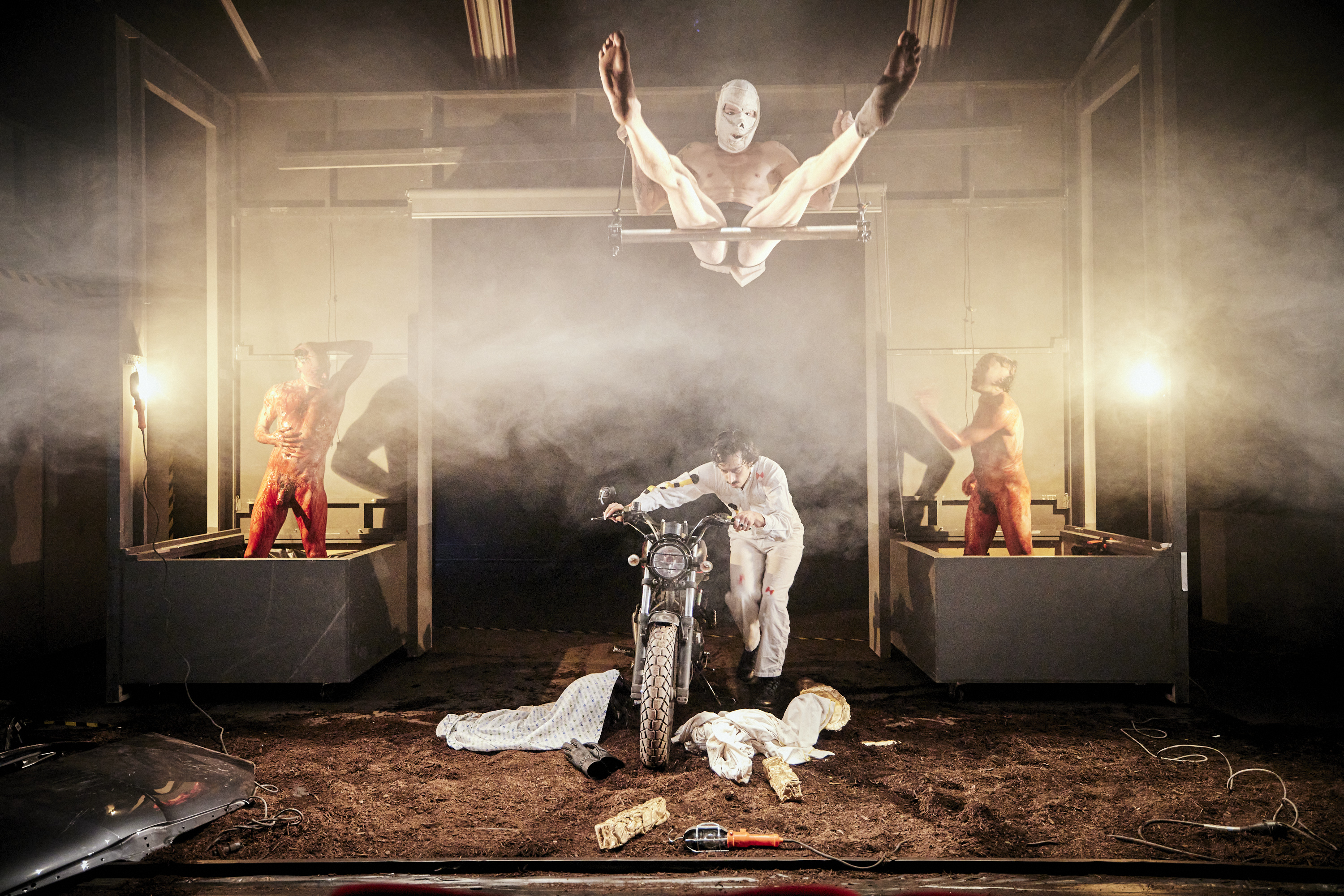 Nestor Crévelong, acteur célèbre des films de propagande produits et diffusés par le Parti Unitaire, déserte son plateau de tournage bien décidé à se soûler dans les quartiers chauds de la capitale. Il emprunte l’échangeur autoroutier de l’Hypercentre. Au même instant Basile, jeune sociopathe échappé d’une clinique psychiatrique, chevauche en sens inverse une motocyclette d’occasion. A 22h37, heure locale, les véhicules de Basile et Nestor entrent en collision. Nestor est découpé en sept morceaux distincts quand Basile réchappe miraculeusement à l’accident ; à son réveil, c’est la pensée de Nestor qui s’exprime par sa bouche. Les voilà deux à partager un même corps. Aidés par Carmen Stabb, l’infirmière dévolue à ses soins, ils conviendront mutuellement de récupérer le corps démembré de Nestor à la morgue et de provoquer une série d’accidents mortels afin de remettre le monde en mouvement.